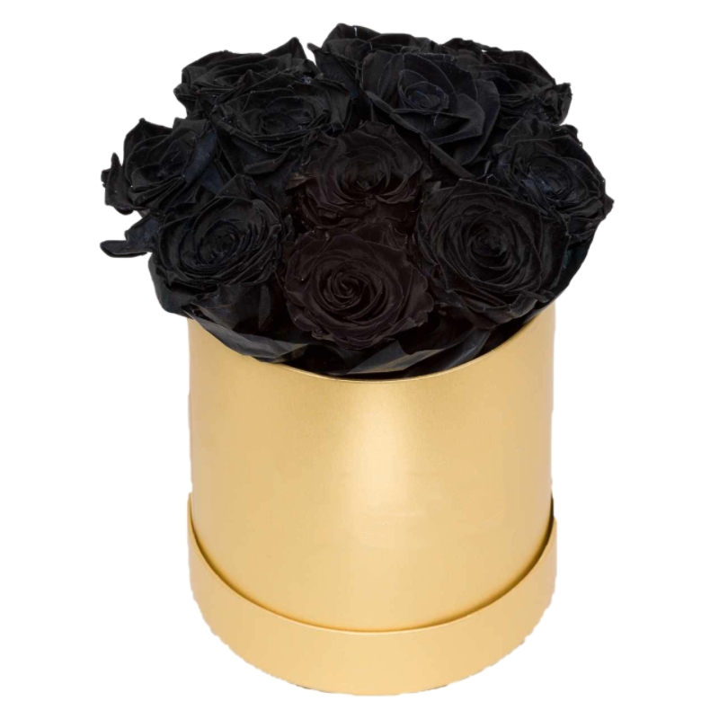 Букет состоит из 11 черных роз, коробка, оазис.