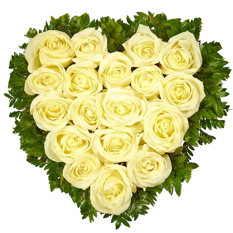 Сердце из 19 белых роз